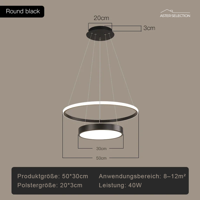 Der Gold Schwarz LED Kronleuchter überzeugt durch seine elegante Farbkombination und sein minimalistisches Design. Mit seiner klaren Form passt er perfekt über Esstische, Kücheninseln oder in moderne Wohnzimmer. Dank dimmbarer LED-Technologie können Sie die Helligkeit flexibel anpassen und so für jede Situation die richtige Atmosphäre schaffen.